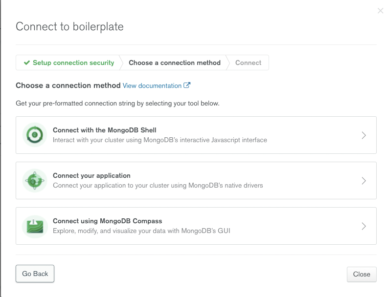 connect 버튼을 클릭하면 mongodb user name과 password를 설정해줍니다.