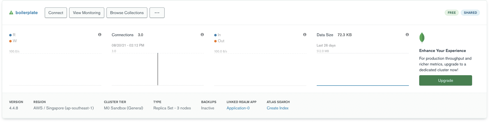 const mongoose = require('mongoose') mongoose.connect("mongoURI", { useNewUrlParser: true, useUnifiedTopology: true, useCreateIndex: true, useFindAndModify: false }).then(() => console.log('MongoDB Connected..')) .catch(err => console.log(err))위에서 사용된 mongoURI는 아까 복사해둔 본인의 mongoDB connection string입니다. (복사한 코드에서 <password> 부분은 본인이 처음 설정하였던 mongoDB user password로 적어주셔야 합니다. )